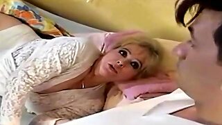 Charming 90s blonde milf blowjobs big cock and fucks hard in cowgirl pose