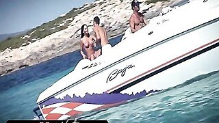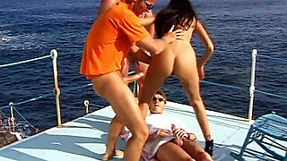 Good looking Angel Long and smoking hot cock addicted slutty Eliska Cross with tight firm ass in bikini have mind blowing threesome on the boat filmed in point of view.