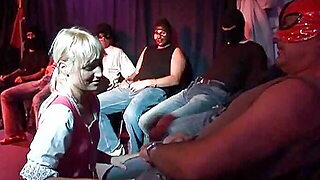 80s German brunette and hot blonde babes are blowjobbing and fucking with four guys