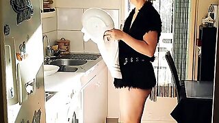 A Brunette in a Skirt Joins Her Lover for a Fuck at Home