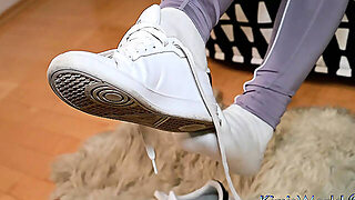 Shoving my beautiful feet in smelly socks down my slaves throat