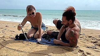 Girls Beach Double Creampie Threesome with Hubbys Friend