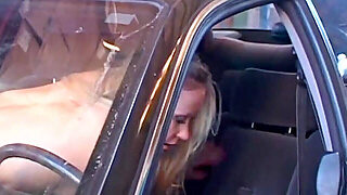 ultra-kinky towheaded woman from Germany riding a cock in the back of the car