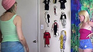 Beautiful blonde Haley Spades in hot ff&m action in the bedroom