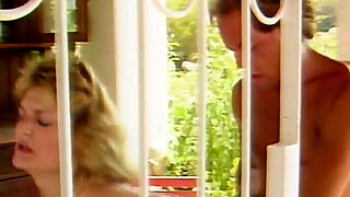 Sexy blonde in threesome vintage hardcore action