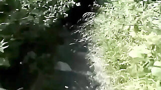 Meagan Reed captivates with ebony allure in a daring vintage outdoor threesome