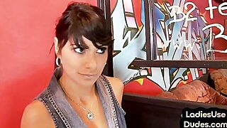 Booted Shorter Haired Dominant Brunette Pushes Boobs, Pussy and Ass Into His Face
