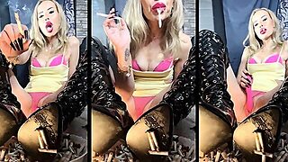 Chain Smoking marlboro 100 & Eve 120 in Boots & bra Dildo fun Pussy licking & blow job