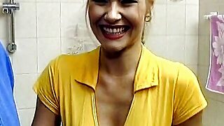 Superb blonde German babe fucked in the bathroom