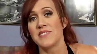 Mature redhead in glasses sucks a cock and takes a ride on it