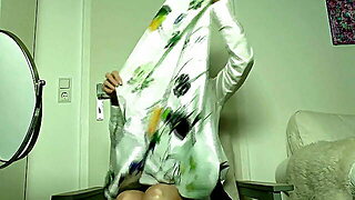 German MILF delights in solo play and gives a blowjob to a stiff dick