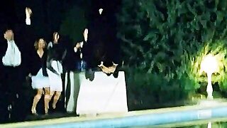Cuckold at the party - wife shows tits, gives bj, dirty talk with hotwife on the phone, gets cum on, and fakes into the camera