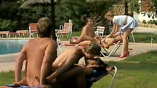 Unforgettable blowjob and orgy near the pool with hot chicks in bikini