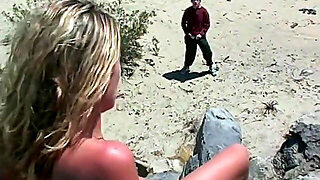 Vintage Blonde MFF Sex on Beach: Blowjob, Doggy Brunette Porn