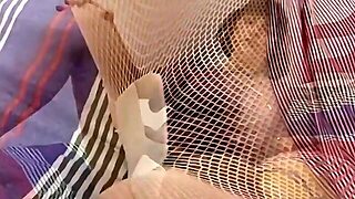 Busty Latina Dresses in Vintage Stockings Makes Nylon Footjob
