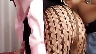 sex-positive secretary sans undies tries on pantyhose at the workplace